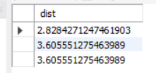 sqrt(power(x1-x2,2)+power(y1-y2,2)) as dist