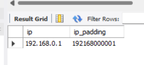 inet_aton 자료형 처럼 ip 주소 전용 자료형이 제공되지 않는 미들웨어의 경우 ip 주소등을 비교할 때 조금 다른 방법을 사용해야 한다.