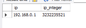 inet_aton('127.0.0.1') > inet_aton('192.168.0.1') as gt;