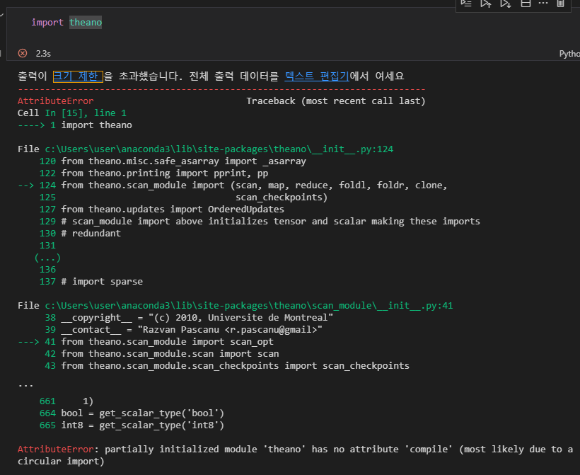 1. 너 덕분에 다른 에러는 놀랍지도 않아 Theano야..