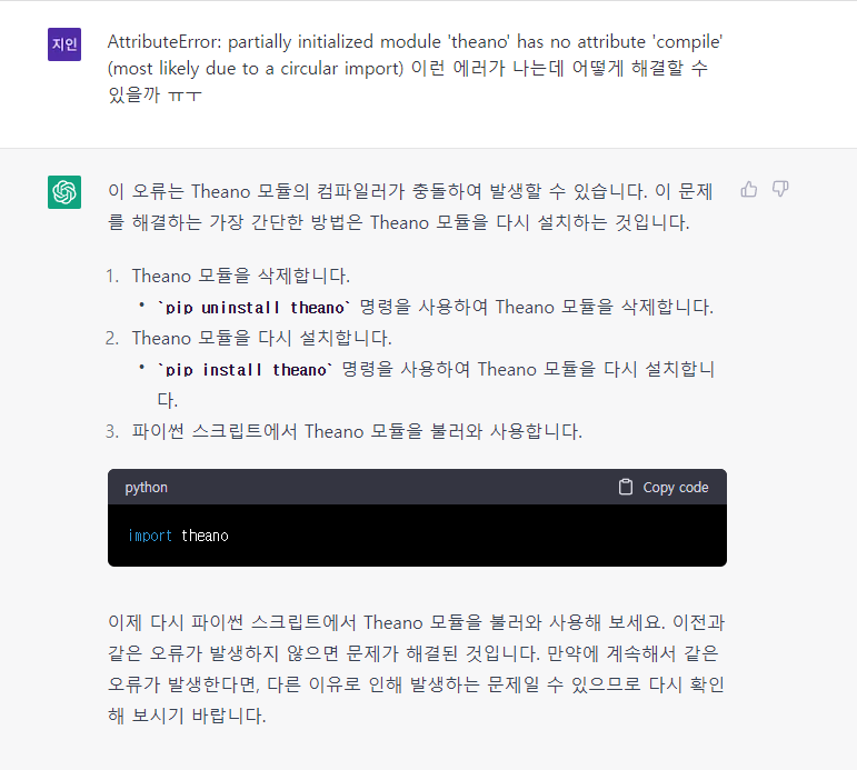 1. 너 덕분에 다른 에러는 놀랍지도 않아 Theano야..