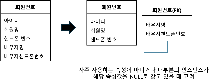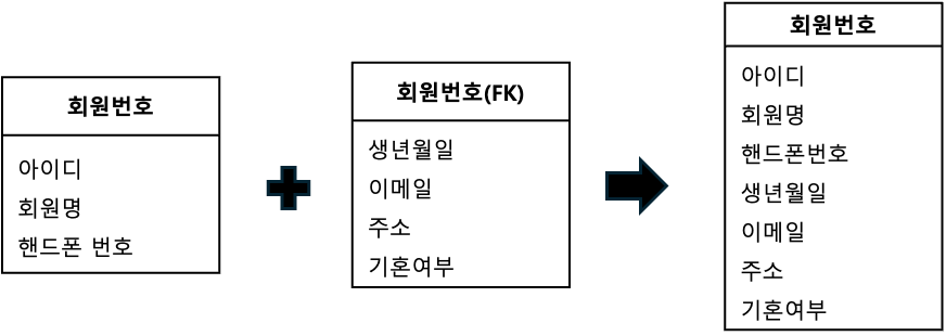 | 테이블 병합 | 1:1 관계 테이블 병합 |