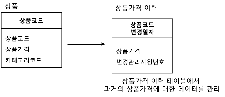 2.1 테이블 수직 분할 : 엔터티의 일부 속성을 별도의 엔터티로 분할(1:1 관계 성립)